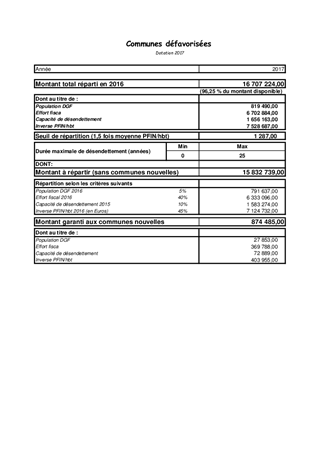 Il est proposé à la Commission Permanente de répartir la dotation 2017 du Fonds départemental de péréquation de la taxe professionnelle s’élevant à 17 358 155 €.