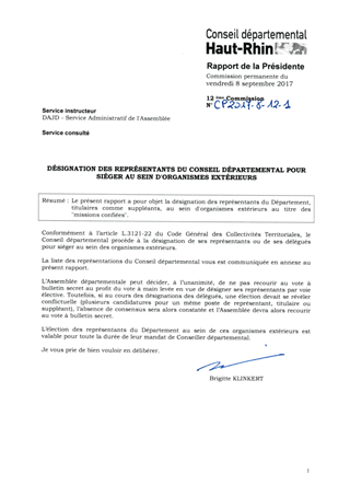 Le présent rapport a pour objet la désignation des représentants du Département, titulaires comme suppléants, au sein d'organismes extérieurs au titre des "missions confiées".
