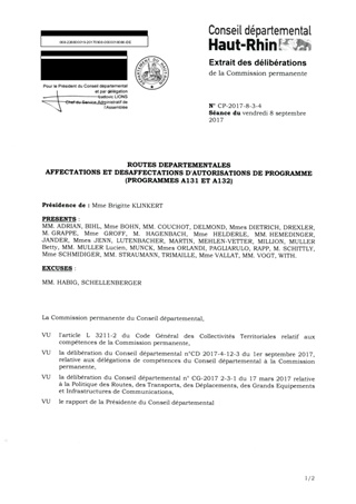 ROUTES DEPARTEMENTALES AFFECTATIONS ET DESAFFECTATIONS D'AUTORISATIONS DE PROGRAMME (PROGRAMMES A131 ET A132)