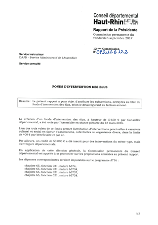 Le présent rapport a pour objet d'attribuer les subventions, octroyées au titre du fonds d'intervention des élus, selon le détail figurant au tableau annexé.