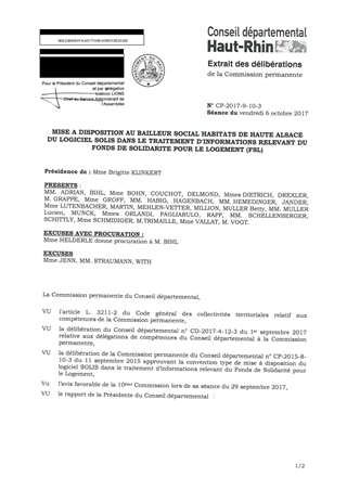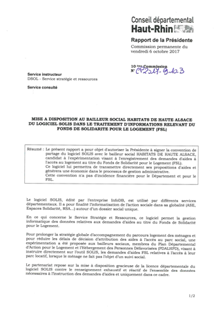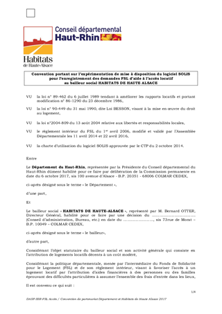 MISE A DISPOSITION AU BAILLEUR SOCIAL HABITATS DE HAUTE ALSACE DU LOGICIEL SOLIS DANS LE TRAITEMENT D'INFORMATIONS RELEVANT DU FONDS DE SOLIDARITE POUR LE LOGEMENT (FSL)