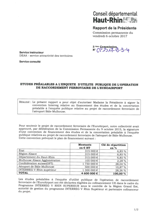 Le présent rapport a pour objet d'autoriser Madame la Présidente à signer la convention Interreg relative au financement des études et de la concertation préalable à l'enquête publique relative au projet de raccordement ferroviaire de l'aéroport Bâle-Mulhouse.
