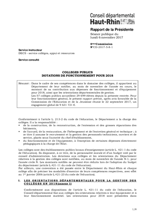 COLLEGES PUBLICSDOTATIONS DE FONCTIONNEMENT POUR 2018