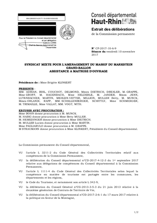 SYNDICAT MIXTE POUR L'AMENAGEMENT DU MASSIF DU MARKSTEIN GRAND-BALLON ASSISTANCE A MAITRISE D'OUVRAGE