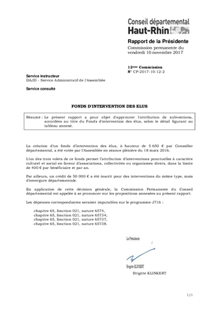 Le présent rapport a pour objet d'approuver l'attribution de subventions, accordées au titre du Fonds d'intervention des élus, selon le détail figurant au tableau annexé.
