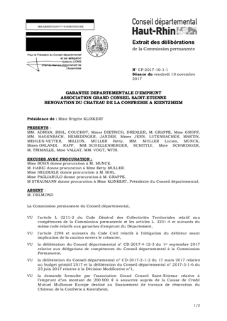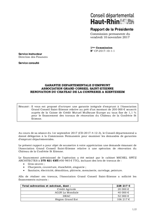 GARANTIE DEPARTEMENTALE D'EMPRUNT ASSOCIATION GRAND CONSEIL SAINT-ETIENNE RENOVATION DU CHATEAU DE LA CONFRERIE A KIENTZHEIM