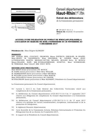 ACCUEIL D'UNE DELEGATION DU POWIAT DE WROCLAW (POLOGNE) A L'OCCASION DU MARCHE DE NOËL D'ENSISHEIM DU 30 NOVEMBRE AU 4 DÉCEMBRE 2017