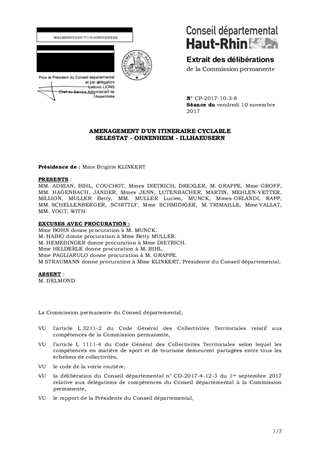 AMENAGEMENT D'UN ITINERAIRE CYCLABLESELESTAT - OHNENHEIM - ILLHAEUSERN