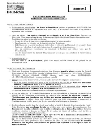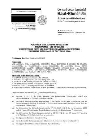 POLITIQUE DES ACTIONS EDUCATIVESPROGRAMME : VIE SCOLAIRESUBVENTIONS POUR LES SORTIES SCOLAIRES AVEC NUITEESDEUXIEME LISTE 2017 ET CRITERES 2018
