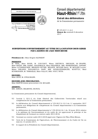 SUBVENTIONS D'INVESTISSEMENT AU TITRE DE LA DOTATION DSUR GEREE PAR L'AGENCE DE L'EAU RHIN-MEUSE