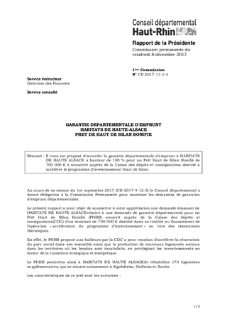 GARANTIE DEPARTEMENTALE D'EMPRUNTHABITATS DE HAUTE-ALSACE PRET DE HAUT DE BILAN BONIFIE