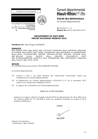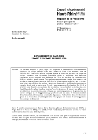 DEPARTEMENT DU HAUT-RHINPROJET DE BUDGET PRIMITIF 2018