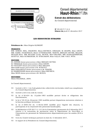 A l’occasion du vote du budget primitif 2018, je vous propose de délibérer sur les effectifs et autres mesures propres à assurer le bon fonctionnement de l’administration départementale ainsi que sur l’inscription de 97 767 000 € au titre des dépenses de fonctionnement dont 567 000 € pour la subvention à l’ASPAD68 et 137 000 € pour la subvention à la caisse départementale de retraite, 3 640 000 € au titre des recettes de fonctionnement, 6 000 € au titre des dépenses d’investissement et 6 000 € au titre des recettes d’investissement.