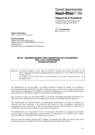 RD 66 - RÉAMÉNAGEMENT DES CARREFOURS DE L'ÉCHANGEUR SUR L'A35 À BARTENHEIM ETUDES DE PROJET
