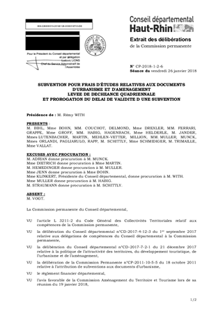 SUBVENTION POUR FRAIS D'ÉTUDES RELATIVES AUX DOCUMENTS D'URBANISME ET D'AMENAGEMENT LEVEE DE DECHEANCE QUADRIENNALE ET PROROGATION DU DELAI DE VALIDITE D UNE SUBVENTION