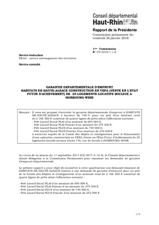 GARANTIE DEPARTEMENTALE D'EMPRUNTHABITATS DE HAUTE-ALSACE CONSTRUCTION EN VEFA (VENTE EN L'ETAT FUTUR D'ACHEVEMENT) DE 25 LOGEMENTS LOCATIFS SOCIAUX A HORBOURG-WIHR