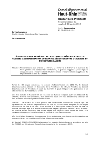 Conformément aux articles L 1424-24, L 1424-24-2 et R 1424-2 et suivants du Code général des collectivités territoriales, le présent rapport a pour objet la désignation des 14 représentants titulaires et des 14 représentants suppléants du Département au sein du CASDIS.