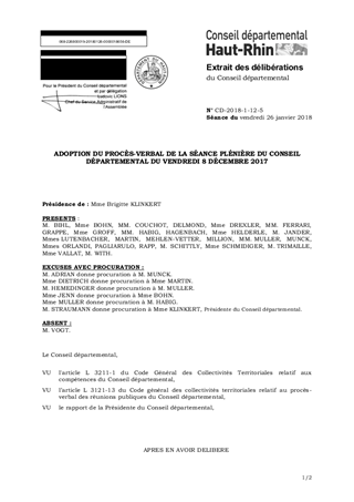ADOPTION DU PROCÈS-VERBAL DE LA SÉANCE PLÉNIÈRE DU CONSEIL DÉPARTEMENTAL DU VENDREDI 8 DÉCEMBRE 2017