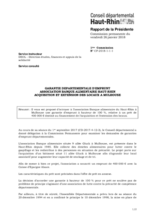 GARANTIE DEPARTEMENTALE D'EMPRUNTASSOCIATION BANQUE ALIMENTAIRE HAUT-RHINACQUISITION ET EXTENSION DES LOCAUX A MULHOUSE