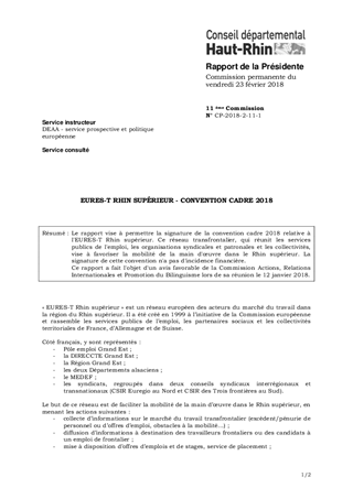EURES-T RHIN SUPÉRIEUR - CONVENTION CADRE 2018