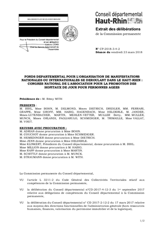 FONDS DEPARTEMENTAL POUR L'ORGANISATION DE MANIFESTATIONS NATIONALES OU INTERNATIONALES SE DEROULANT DANS LE HAUT-RHIN : CONGRES NATIONAL DE L'ASSOCIATION POUR LA PROMOTION DES HOPITAUX DE JOUR POUR PERSONNES AGEES
