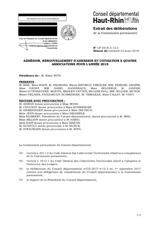 ADHÉSION, RENOUVELLEMENT D'ADHESION ET COTISATION À QUATRE ASSOCIATIONS POUR L'ANNÉE 2018