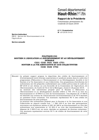 POLITIQUE C03SOUTIEN À L'EDUCATION A L'ENVIRONNEMENT ET AU DÉVELOPPEMENT DURABLEC231 C232 C631 C632 C731SOUTIEN A LA VIE ASSOCIATIVE ET AUX COLLECTIVITESC232 C632 C732