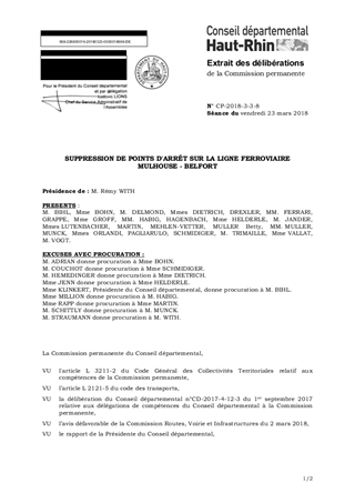SUPPRESSION DE POINTS D'ARRÊT SUR LA LIGNE FERROVIAIRE MULHOUSE - BELFORT