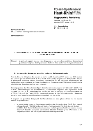 Le présent rapport a pour objet d'approuver les nouvelles conditions d'octroi des garanties d'emprunt du Département du Haut-Rhin en faveur du logement social.