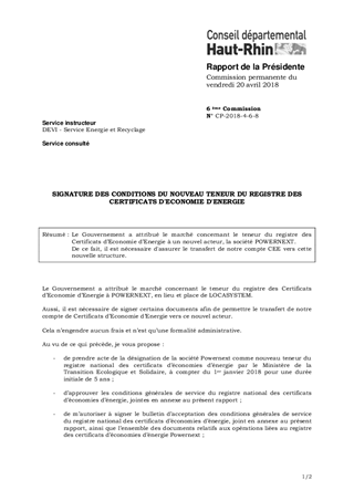 SIGNATURE DES CONDITIONS DU NOUVEAU TENEUR DU REGISTRE DES CERTIFICATS D'ECONOMIE D'ENERGIE