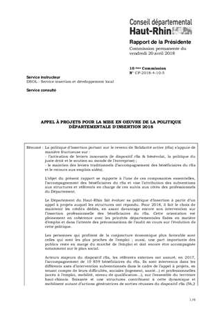 APPEL À PROJETS POUR LA MISE EN OEUVRE DE LA POLITIQUE DÉPARTEMENTALE D'INSERTION 2018
