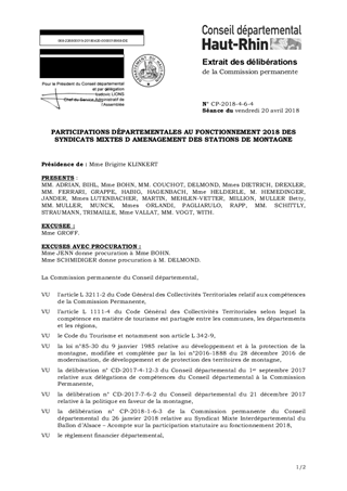 PARTICIPATIONS DÉPARTEMENTALES AU FONCTIONNEMENT 2018 DES SYNDICATS MIXTES D AMENAGEMENT DES STATIONS DE MONTAGNE