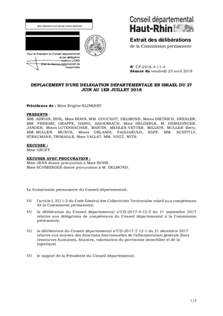 DEPLACEMENT D'UNE DELEGATION DEPARTEMENTALE EN ISRAEL DU 27 JUIN AU 1ER JUILLET 2018