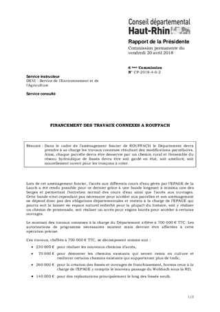 FINANCEMENT DES TRAVAUX CONNEXES A ROUFFACH