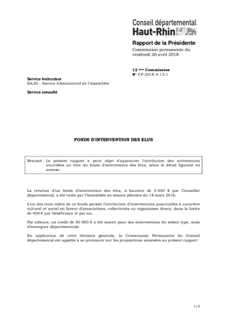 Le présent rapport a pour objet d'approuver l'attribution des subventions accordées au titre du fonds d'intervention des élus, selon le détail figurant en annexe.