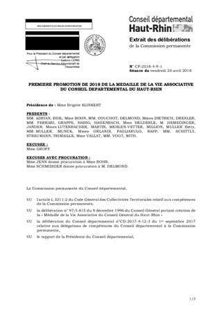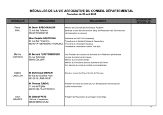 PREMIERE PROMOTION DE 2018 DE LA MEDAILLE DE LA VIE ASSOCIATIVE DU CONSEIL DEPARTEMENTAL DU HAUT-RHIN