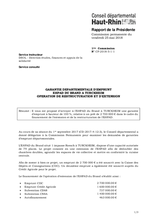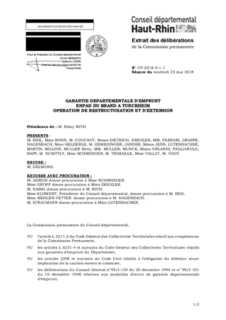 GARANTIE DEPARTEMENTALE D'EMPRUNTEHPAD DU BRAND A TURCKHEIMOPERATION DE RESTRUCTURATION ET D'EXTENSION