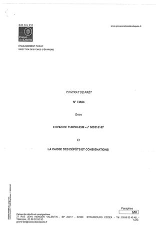 Il vous est proposé d’octroyer à l’EHPAD du Brand à TURCKHEIM une garantie d’emprunt à hauteur de 100 %, relative à un prêt de 2 700 000 € dans le cadre du financement de l’extension et de la restructuration de l’EHPAD.