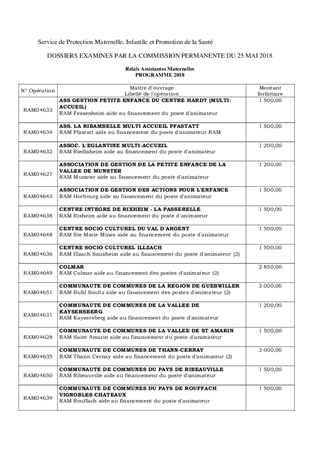 Il est proposé la mise en paiement des subventions concernant le financement des postes d'animateurs de Relais Assistants Maternels pour un montant total de 60 887 € réparti entre les 26 organismes énumérés dans la liste jointe à ce rapport.