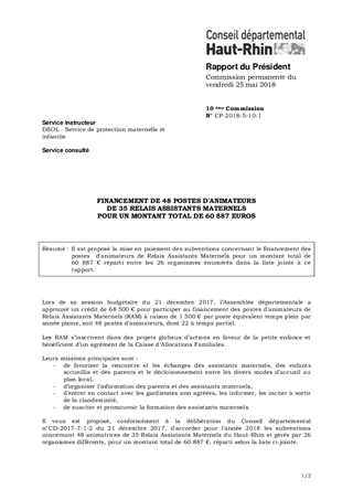 FINANCEMENT DE 48 POSTES D'ANIMATEURS DE 35 RELAIS ASSISTANTS MATERNELS POUR UN MONTANT TOTAL DE 60 887 EUROS