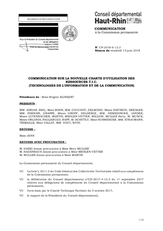 COMMUNICATION SUR LA NOUVELLE CHARTE D'UTILISATION DES RESSOURCES T.I.C. (TECHNOLOGIES DE L'INFORMATION ET DE LA COMMUNICATION)
