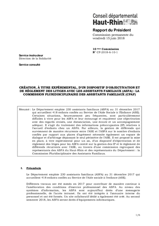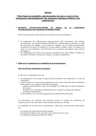 CRÉATION, À TITRE EXPÉRIMENTAL, D'UN DISPOSITIF D'OBJECTIVATION ET DE RÈGLEMENT DES LITIGES AVEC LES ASSISTANTS FAMILIAUX (ASFA) : LA COMMISSION PLURIDISCIPLINAIRE DES ASSISTANTS FAMILIAUX (CPAF)