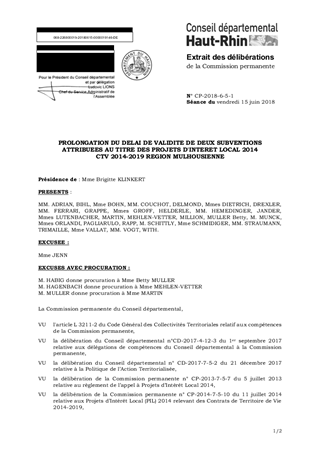 PROLONGATION DU DELAI DE VALIDITE DE DEUX SUBVENTIONS ATTRIBUEES AU TITRE DES PROJETS D'INTERET LOCAL 2014 CTV 2014-2019 REGION MULHOUSIENNE