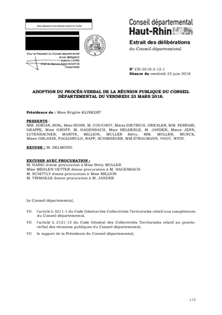 ADOPTION DU PROCÈS-VERBAL DE LA RÉUNION PUBLIQUE DU CONSEIL DÉPARTEMENTAL DU VENDREDI 23 MARS 2018.