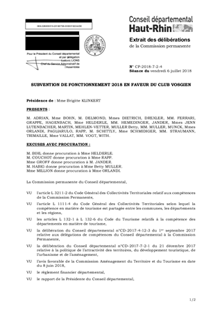 SUBVENTION DE FONCTIONNEMENT 2018 EN FAVEUR DU CLUB VOSGIEN