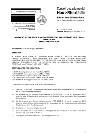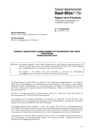 SYNDICAT MIXTE POUR L'AMENAGEMENT DU TECHNOPORT DES TROIS FRONTIERES PARTICIPATION 2018