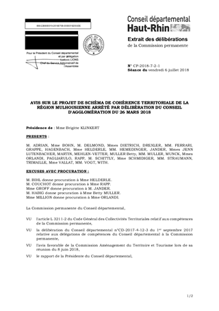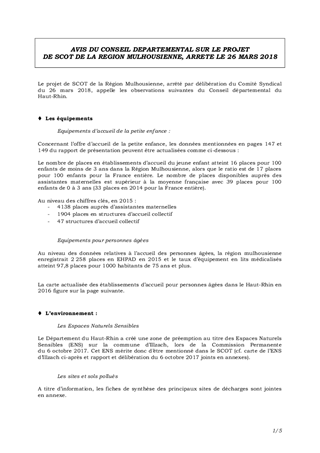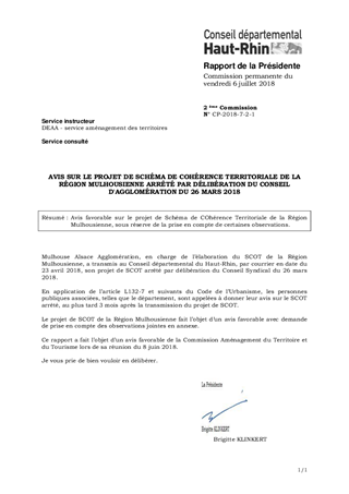 AVIS SUR LE PROJET DE SCHÉMA DE COHÉRENCE TERRITORIALE DE LA RÉGION MULHOUSIENNE ARRÊTÉ PAR DÉLIBÉRATION DU CONSEIL D'AGGLOMÉRATION DU 26 MARS 2018
