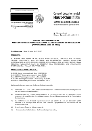 ROUTES DEPARTEMENTALESAFFECTATIONS ET DESAFFECTATIONS D'AUTORISATIONS DE PROGRAMME(PROGRAMMES A111 ET A132)