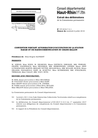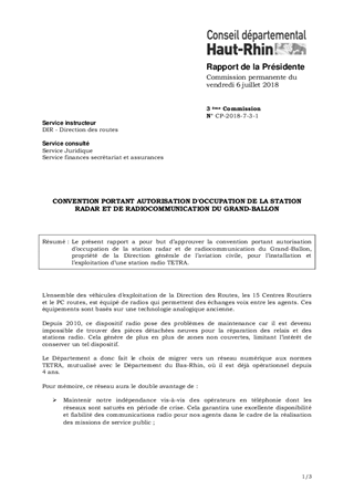 Le présent rapport a pour but d’approuver la convention portant autorisation d’occupation de la station radar et de radiocommunication du Grand-Ballon, propriété de la Direction générale de l’aviation civile, pour l’installation et l’exploitation d’une station radio TETRA.