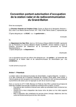 CONVENTION PORTANT AUTORISATION D'OCCUPATION DE LA STATION RADAR ET DE RADIOCOMMUNICATION DU GRAND-BALLON